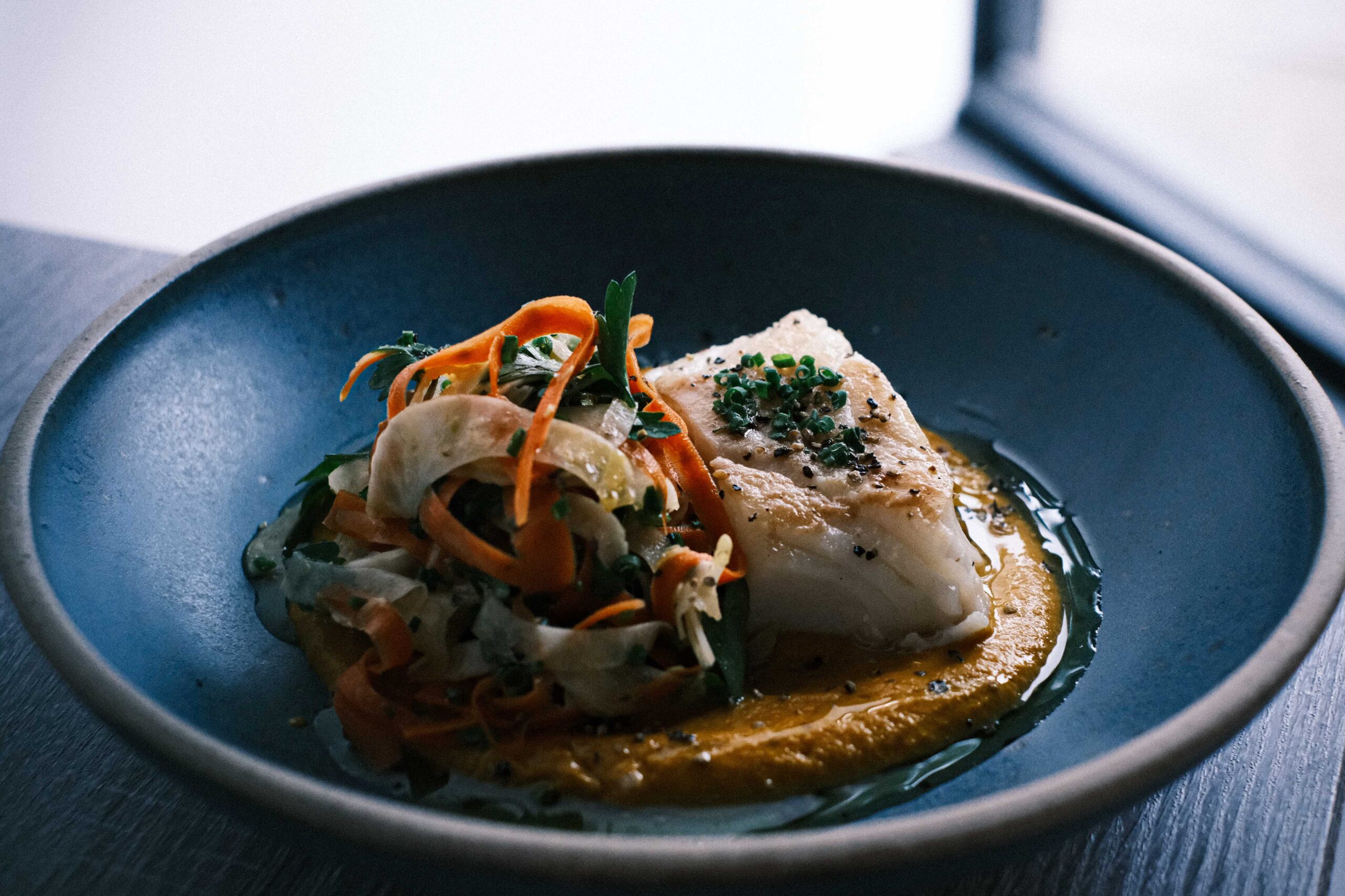 Miso Carrot Puree, Raw Fennel & Carrot Salad, Ginger Dressing