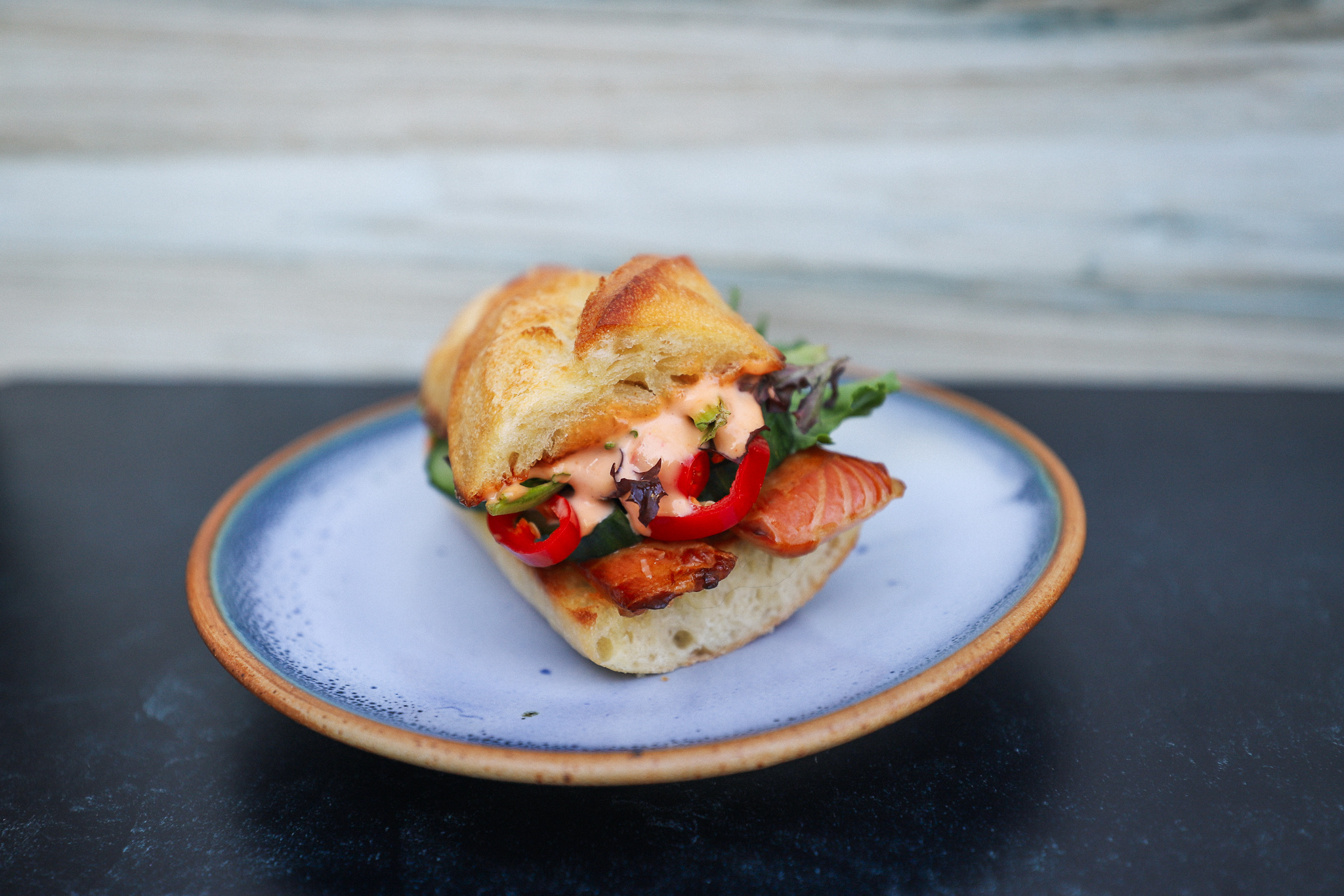 Hot Smoked Salmon Belly "Bacon", Lettuce, Stillman's Farm Tomato, Mayo, Sourdough Bread.