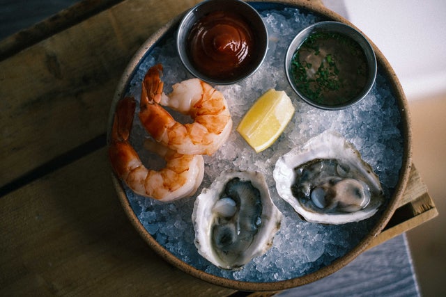 3 half shell oysters, 3 half shell clams, and 3 jumbo shrimp